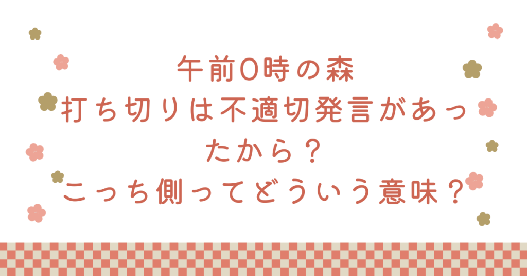 午前0時の森打ち切りは不適切発言があったから?こっち側ってどういう意味?