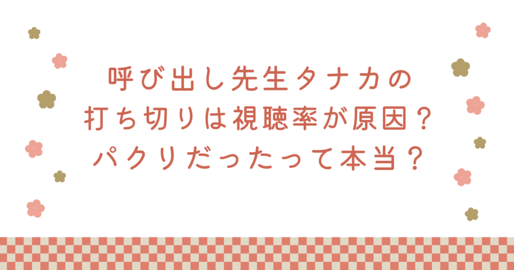 呼び出し先生タナカの打ち切りは視聴率が原因?パクリだったって本当?