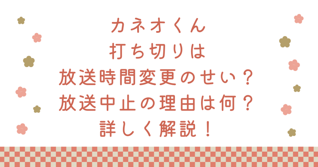 カネオくん打ち切りは放送時間変更のせい?放送中止の理由は何?詳しく解説!
